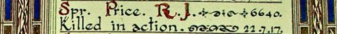Photo of stone headstone courtesy Julia Lyons, great niece of Richard Price