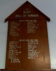 The board commemorates soldiers from the Bluff who served in 1914-1918 and 1939-1945