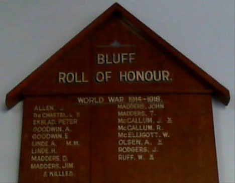 The board commemorates soldiers from the Bluff who served in